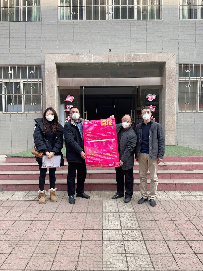 张博老师一行对两所中学一直以来的支持表示感谢,并代表williamhill威廉希尔官网送去了22年高考招生喜报,为岐山高级中学、蔡家坡高级中学的领导和相关老师介绍了williamhill威廉希尔官网专业特色、学科分布,以及其他考生关注的相关问题,结合即将到来的2023年高考招生、志愿填报等相关工作与生源地中学领导、老师进行了讨论,取得了很好的宣传效果。