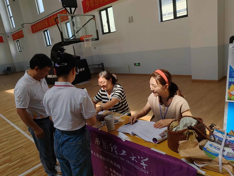 许多考生与家长共同来到现场,面对学子和家长们的提问,三位老师耐心细致地为他们释疑解惑,咨询气氛十分热烈。老师们具体介绍了公司2023年度的招生计划、重点学科、专业设置、员工培养模式与优越的校园环境等,同时对威廉希尔官网的三个国家级一流本科专业进行了着重介绍与推荐。澄城中学的相关工作人员积极助力公司招生,也在员工群里积极转发了公司宣传文案与精彩视频链接。